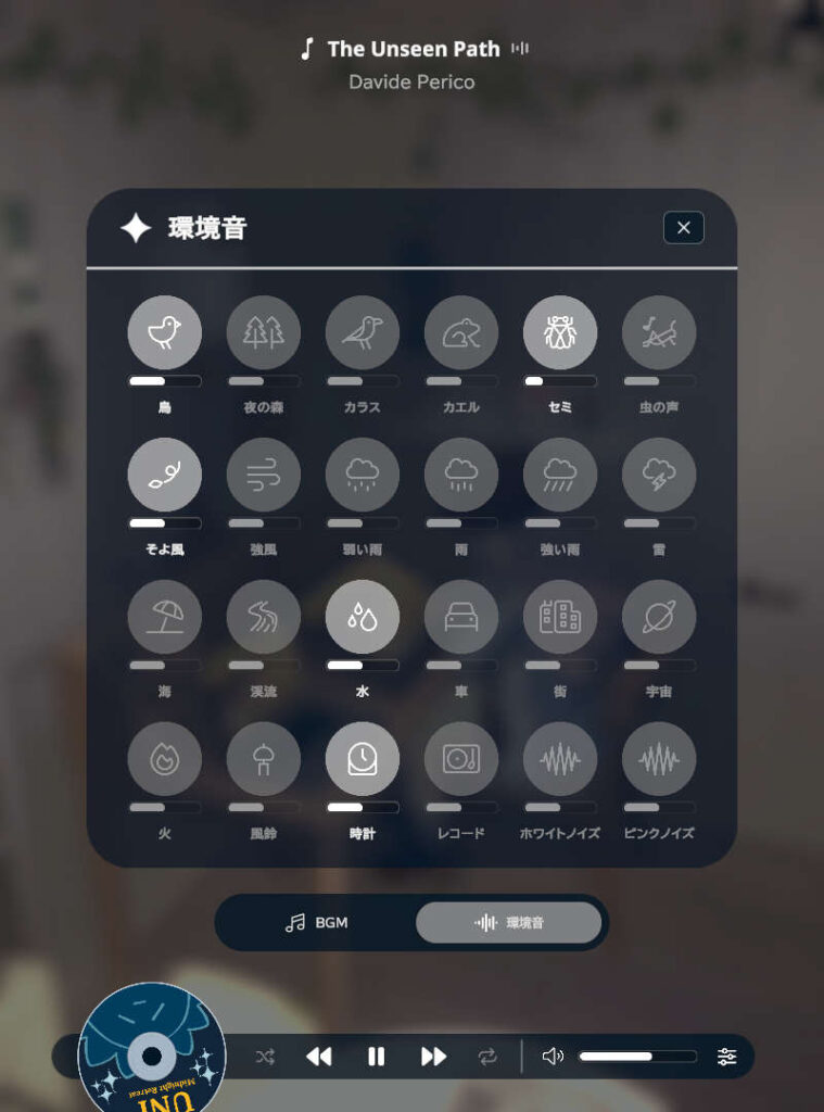 環境音も選べます。豊富…!
