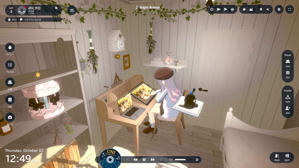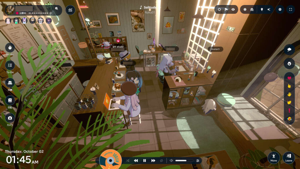 他のプレイヤーさんの部屋にお邪魔して、一緒に作業できる機能があります。