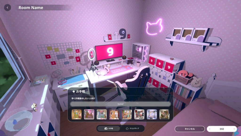 自由すぎると困る人向けに、テンプレート部屋も数種類用意されている親切設計。