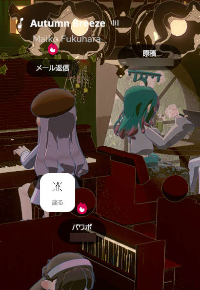 集中モードに切り替えればエモートも見えなくなり、他人同士の気配を感じつつも自分の世界に入れるコワーキングスペースに近い状態に。